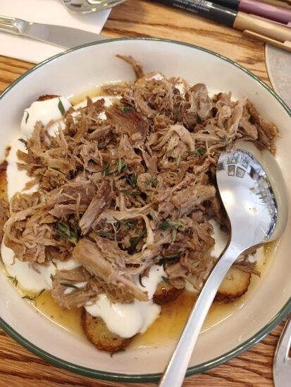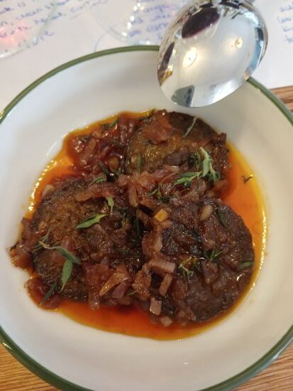 Flavors from dishes like the artichoke spread, red wine butter, Professor Sabit’s own ‘Russian salad’ recipe, ‘drunken’ sucuk, grilled asparagus, tirit, and macerated strawberries with rosemary and kaymak pair beautifully with Tomurcukbağ’s wines.  My favorite pairing was the artichoke with Narince but I loved the drunken sucuk, the tirit went beautifully with the Rezerv Trajan 24, and the strawberry dessert even held up with the new rosé!